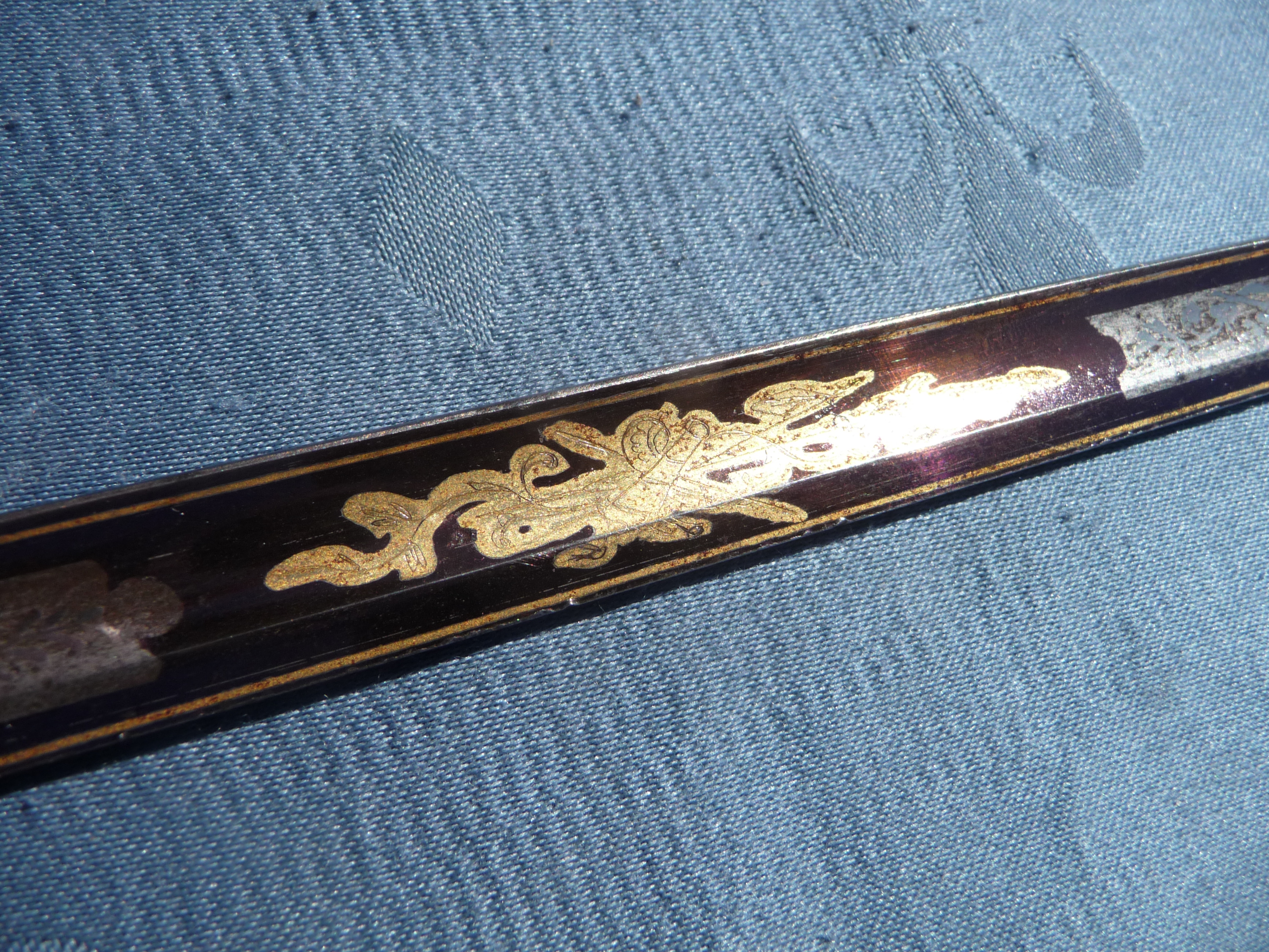 Das Schwert ist ebenfalls signiert, die Signatur ist jedoch schwer zu lesen.