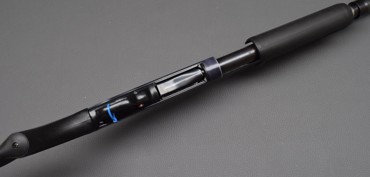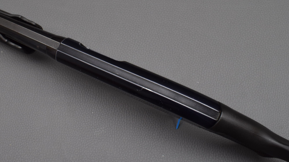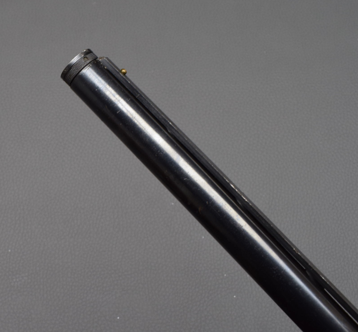 Messing Korn, 10 mm ventiliertev Schiene, Alu-System, Druckpunktabzug, Druckknopfsicherung am Abzugsbügel, Magazinrohr unter dem Lauf. Kunststoffschaft ohne Backe, mit Gummischaftkappe und Riemenbügelbasen. Lauf sehr gut, Brünierung 96%, Schaft sehr gut Gebraucht, gut