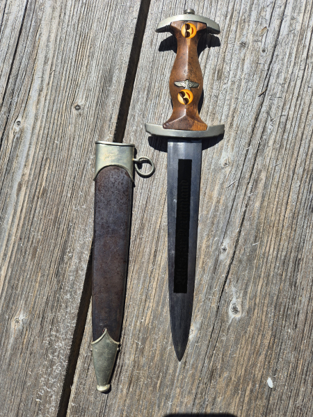 zum Verkauf steht der abgebildete SA Dolch Ex-Röhm der Firma Eickhorn. Der Adler und meiner Meinung nach auch das SA Abzeichen wurden entfernt und wieder eingesetzt (auf Adler und Abzeichen keine Zusicherung Originalität, kann ich nicht bestimmen). Das HK am Adler ist halb verschliffen.