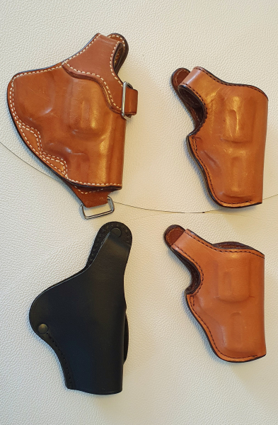 Biete vier neuwertige, unbenutzte Lederholster für Revolver an. Das Angebot besteht aus 1x Bianchi #13, 2x Bianchi #55 L und 1x AKAH.
