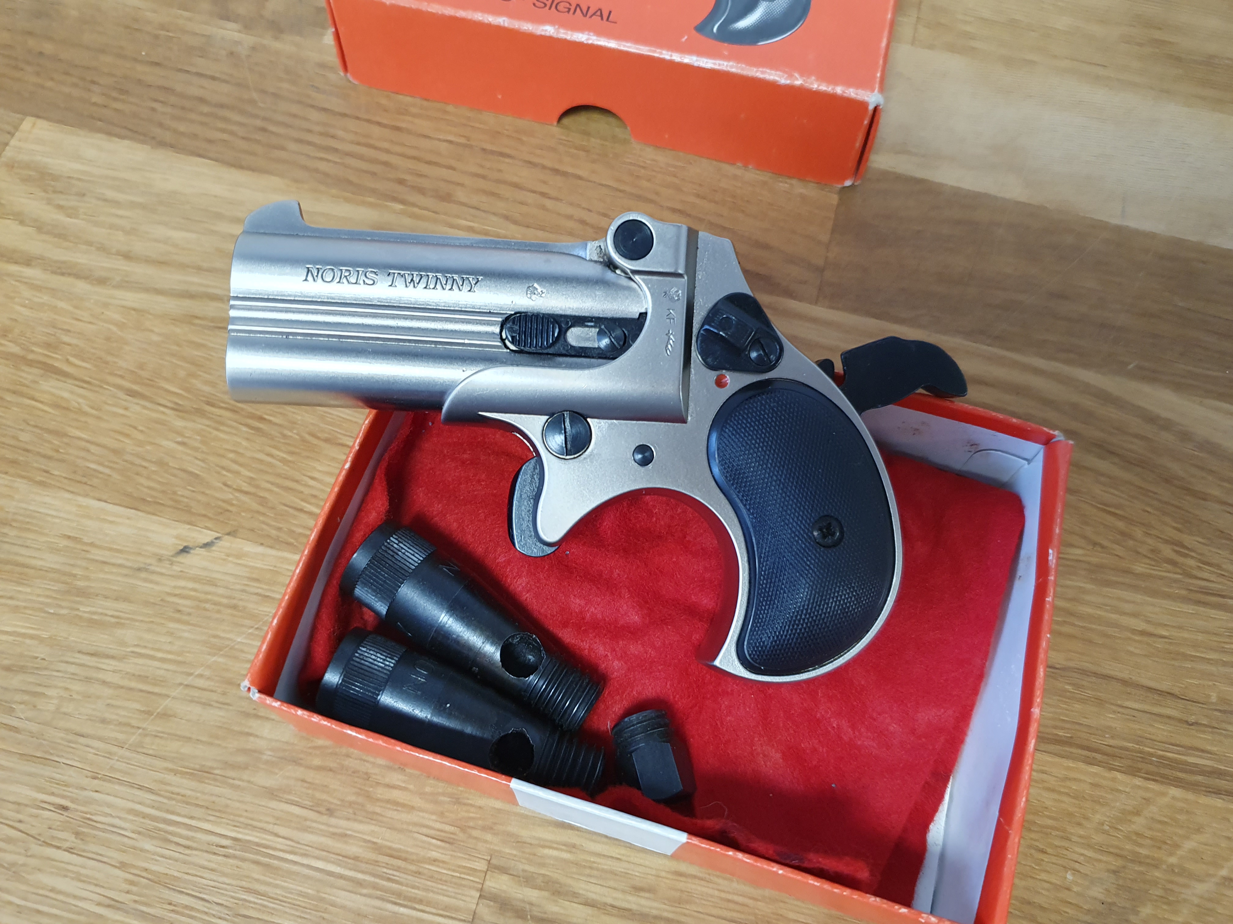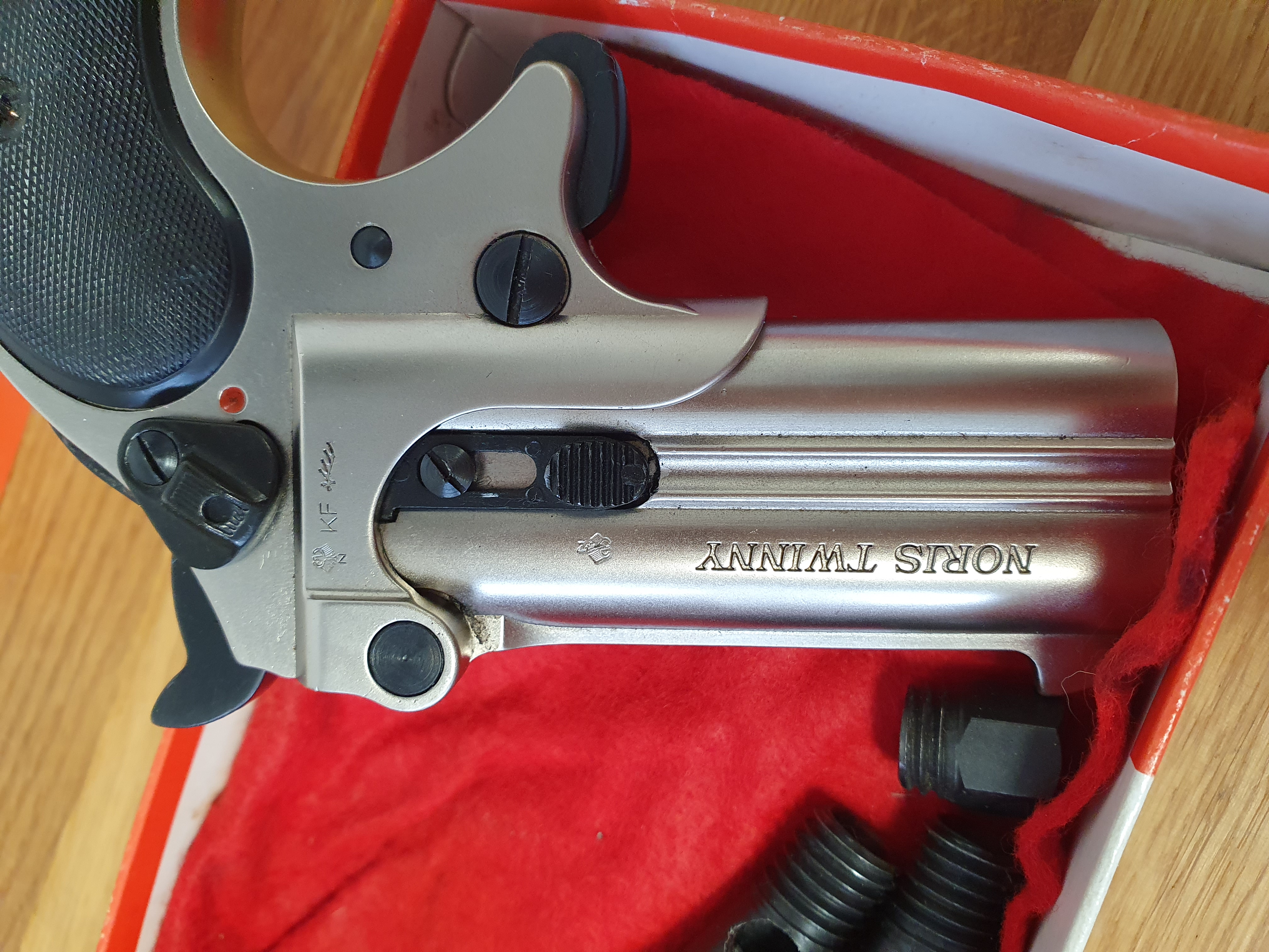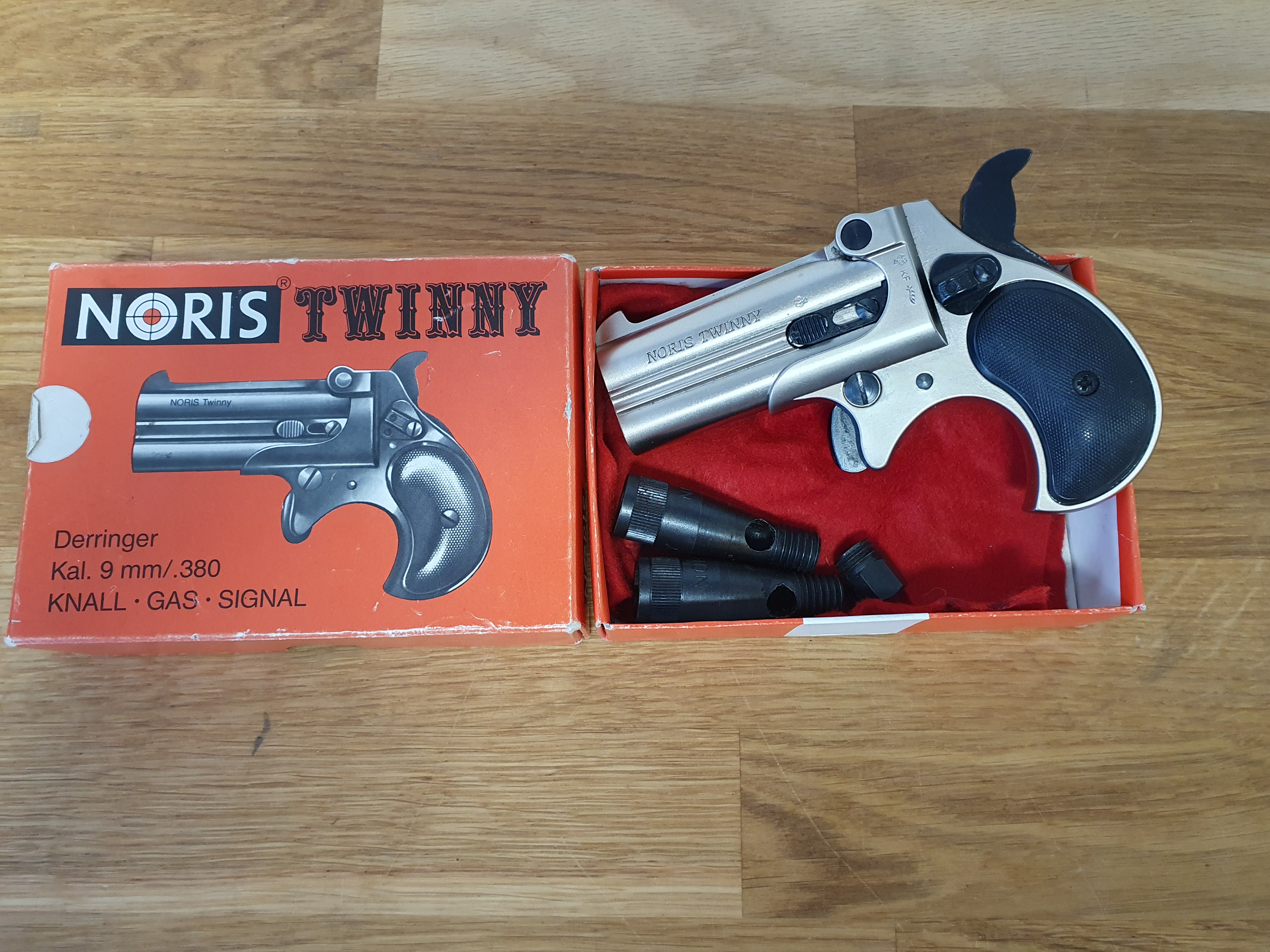 Noris Twinny Derringer, vernickelt. Cal 9mm/.380 Knall