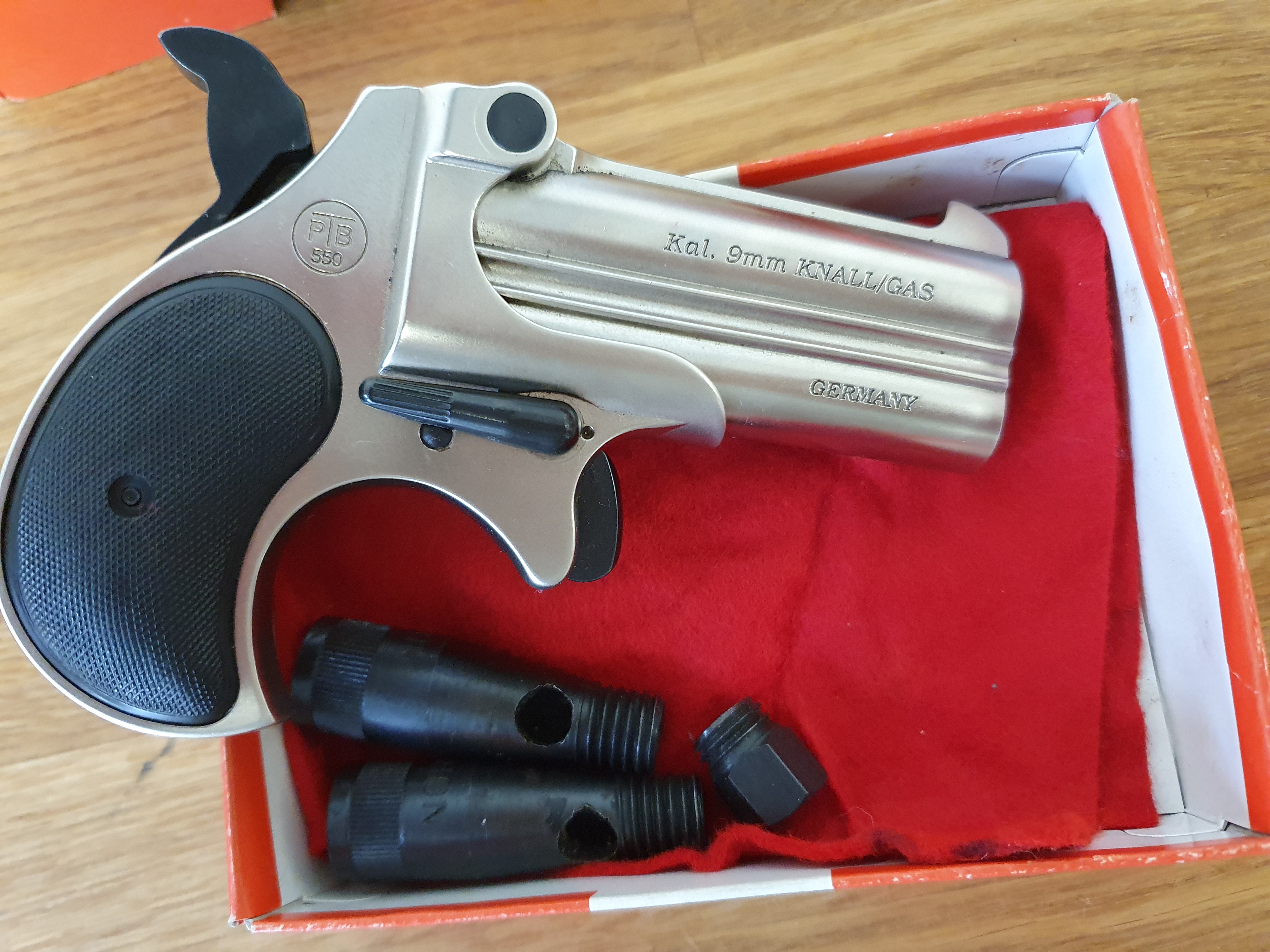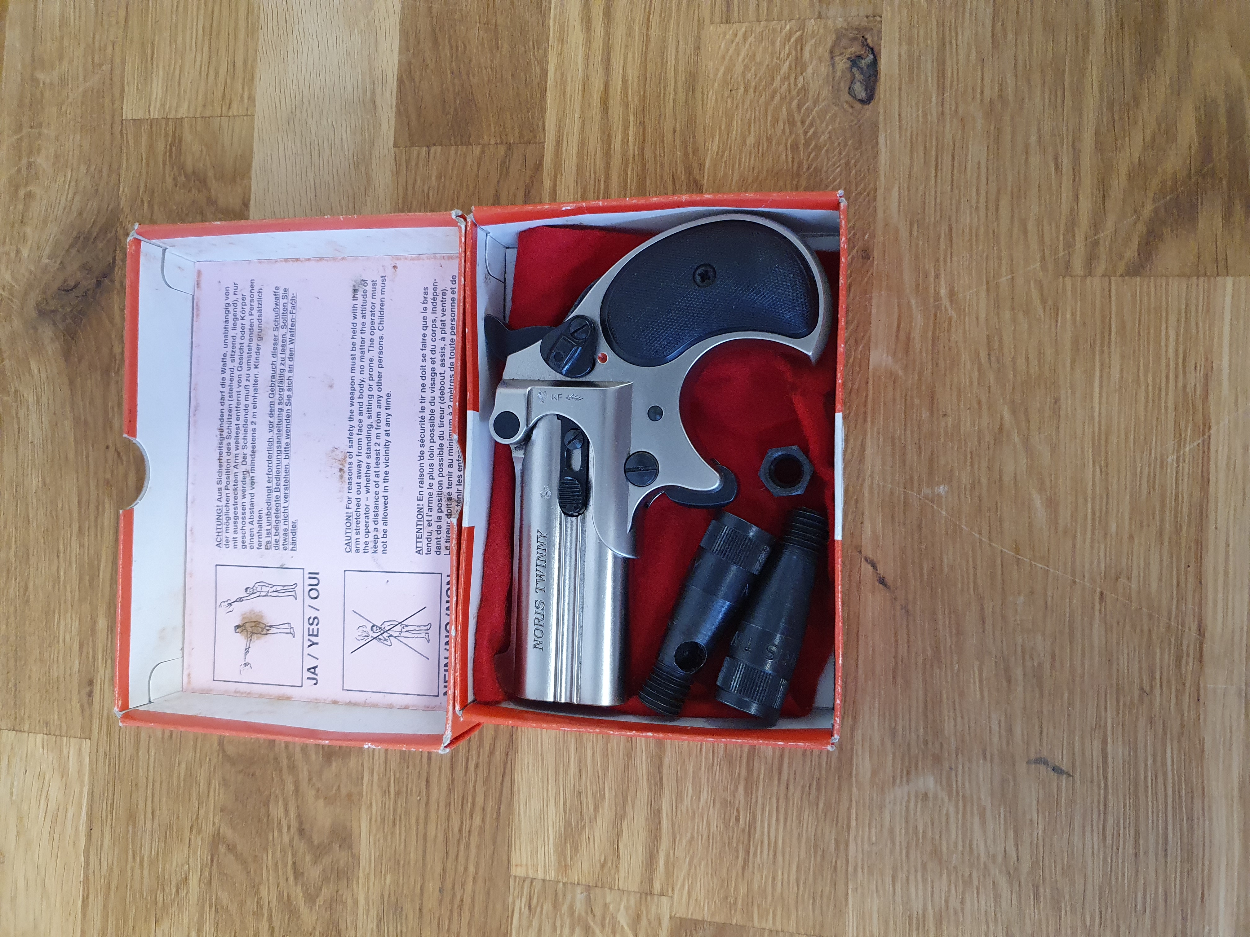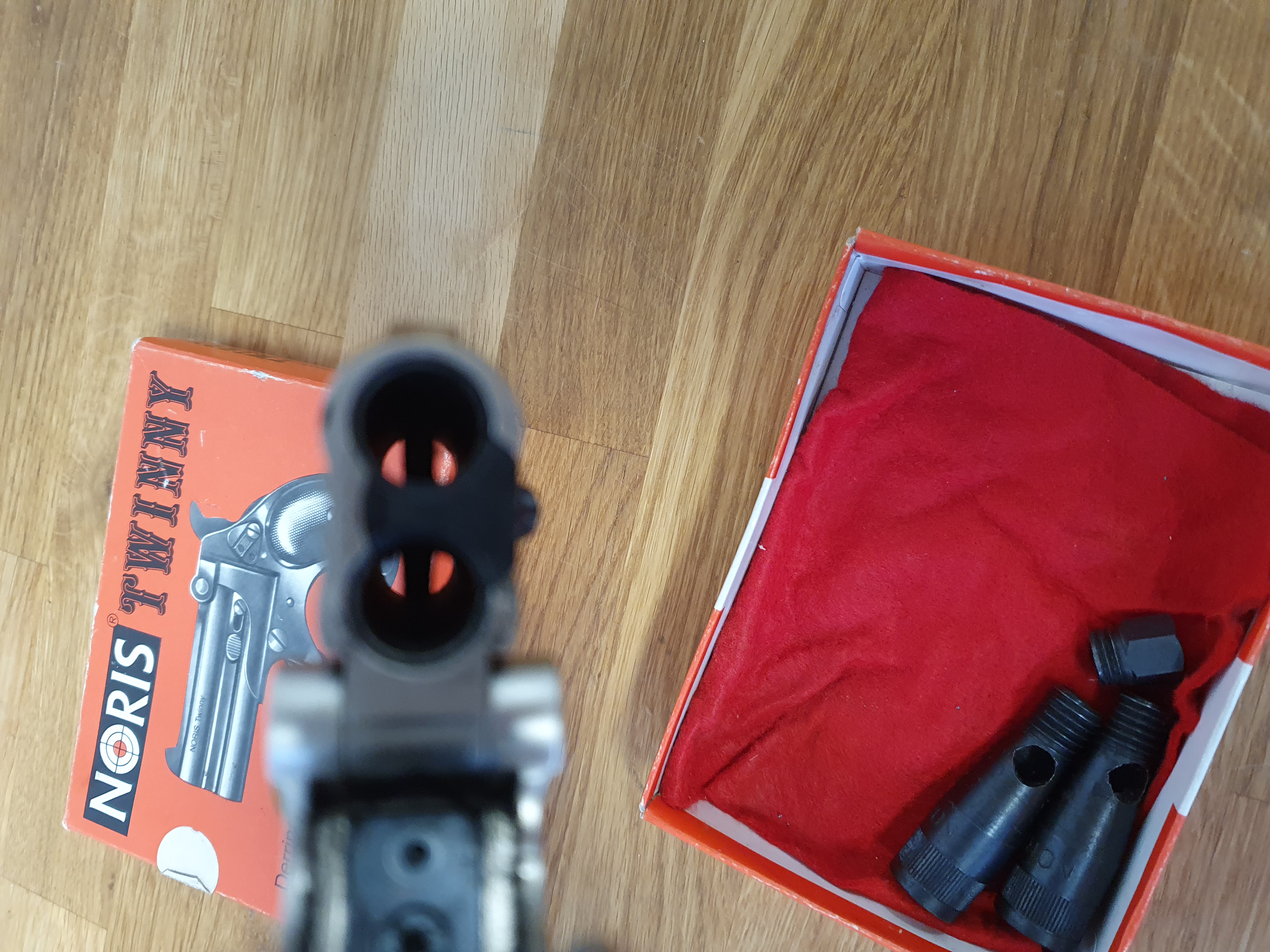 Noris Twinny Derringer, vernickelt. Cal 9mm/.380 Knall