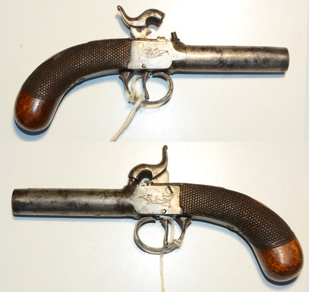 Perkussionsterzerol , England, Lauflänge 6,8 cm, Gesamtlänge 18 cm, Kaliber 10 mm, Altersspuren, technisch völlig in Ordnung