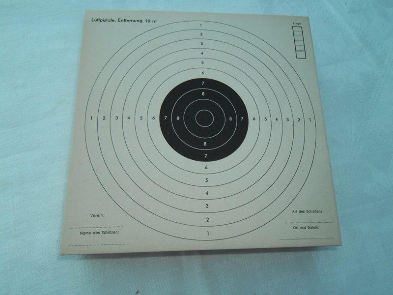 Ältere Zielscheiben/Schiessscheiben 90 Stück 17 x 17 cm leicht nachgedunkelt für Luftpistole, Entfernung 10 m.