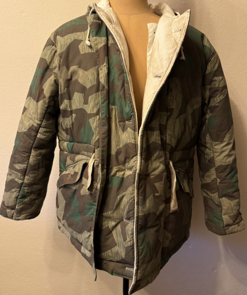 Sie bieten hier auf eine Winterwendejacke in Splittertarn und weiß / getragen/ TOP Kopie, sehr gute Verarbeitung / Größe ca. L/ guter Zustand / WH WK2 / keine weiteren Infos aus Erbmasse / Versand 8,00 EUR versichert / NICHTRAUCHERHAUSHALT / keine Garantie, kein Umtausch /