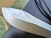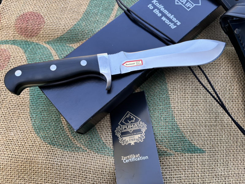 Die lange geschwungene Schneide ist haarscharf, um alles zu zerteilen, was man bei der CAMPMAHLZEIT braucht. Die feine ZAHNUNG am unteren Ende der Schneide ist dafür gedacht um z.B. Seile oder Schüre zu kappen. Auf der anderen Seite befindet sich die kurze derbe BEILSCHNEIDE. Hiermit lässt sich z.B. Reisig schneiden und Feuerholz bearbeiten. Empfehlung: Alle groben Arbeiten mit der Beilschneide ausführen, dann bleibt die Hauptschneide lange scharf. Die Daumenraste und Parierstange sind so angelegt, daß Ihre Hand das Messer sicher halten und führen können.