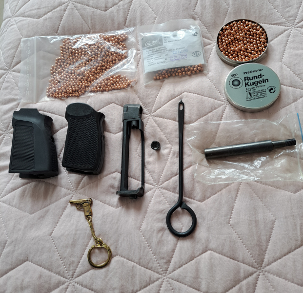 - Eine Griffschale (bakelit) für die schmale Variante der Baikal 654 k oder für echte Makarov Pistole.