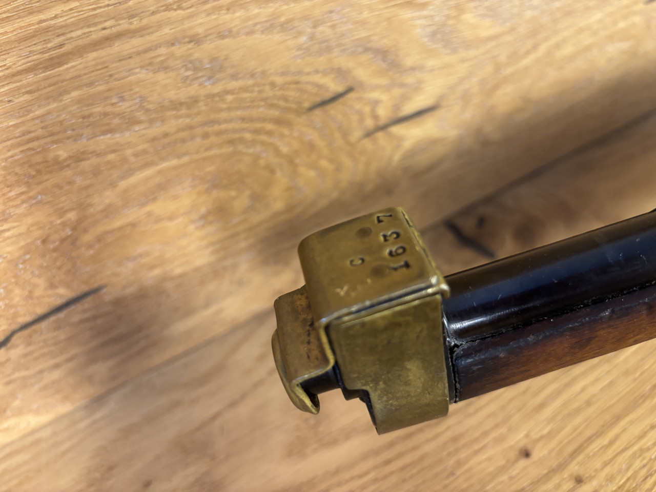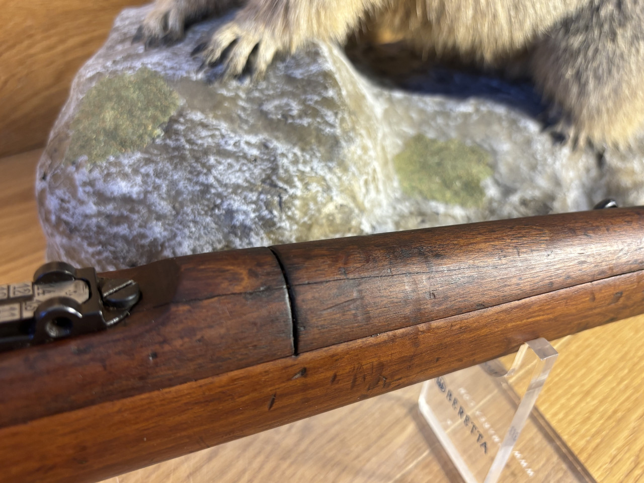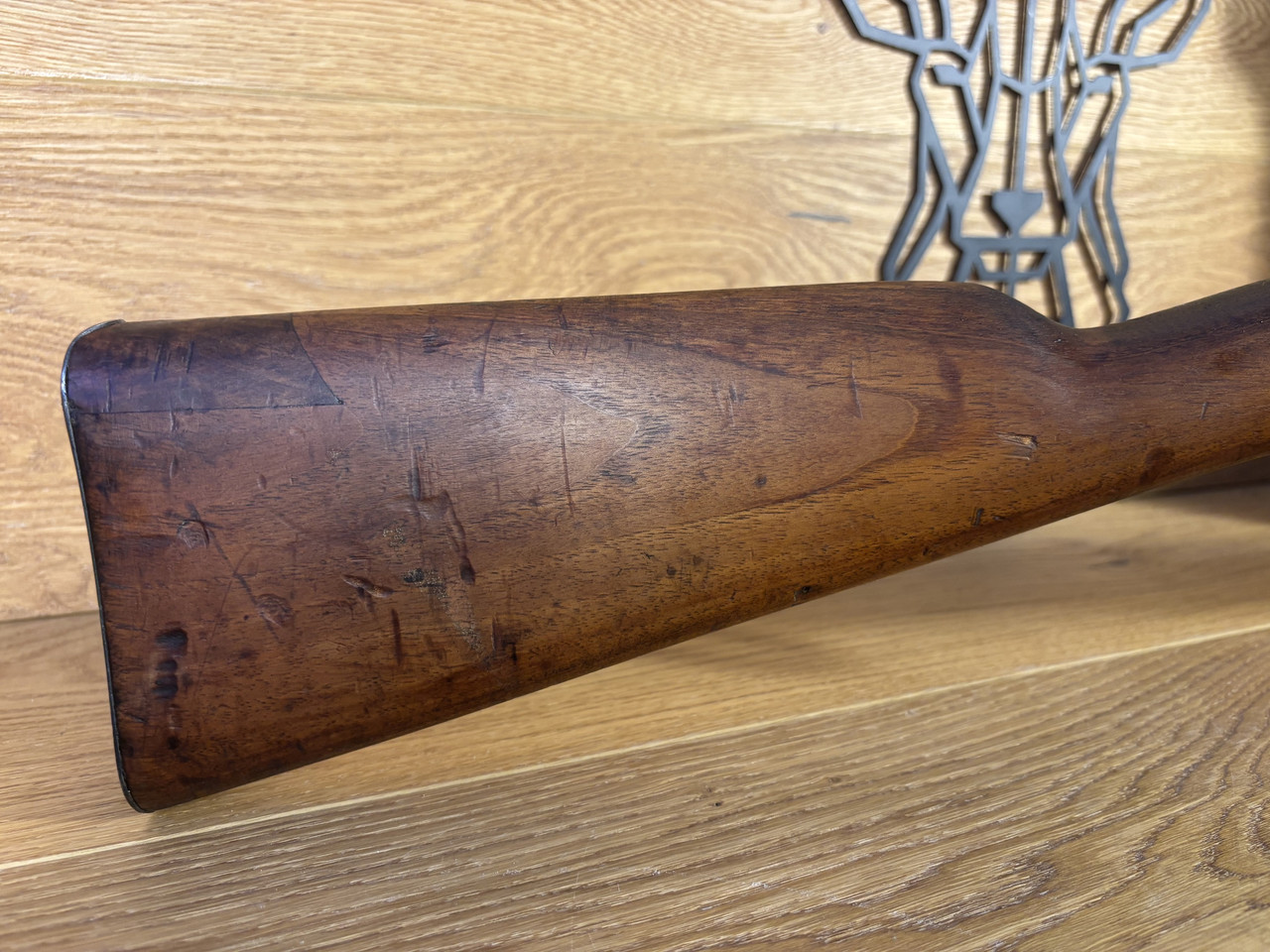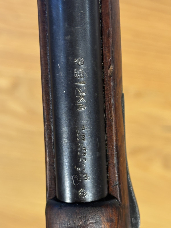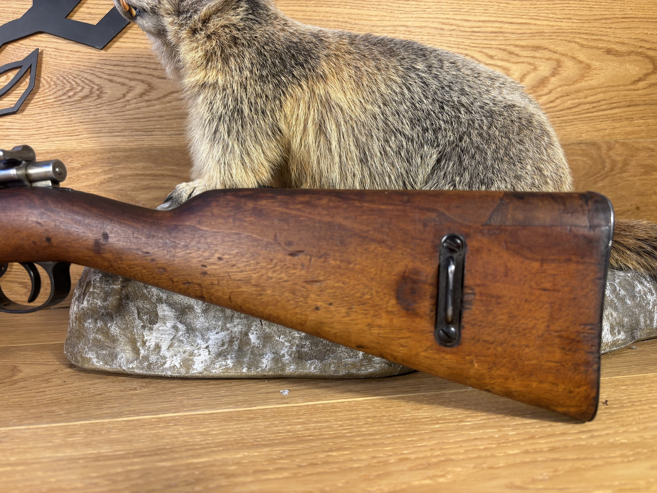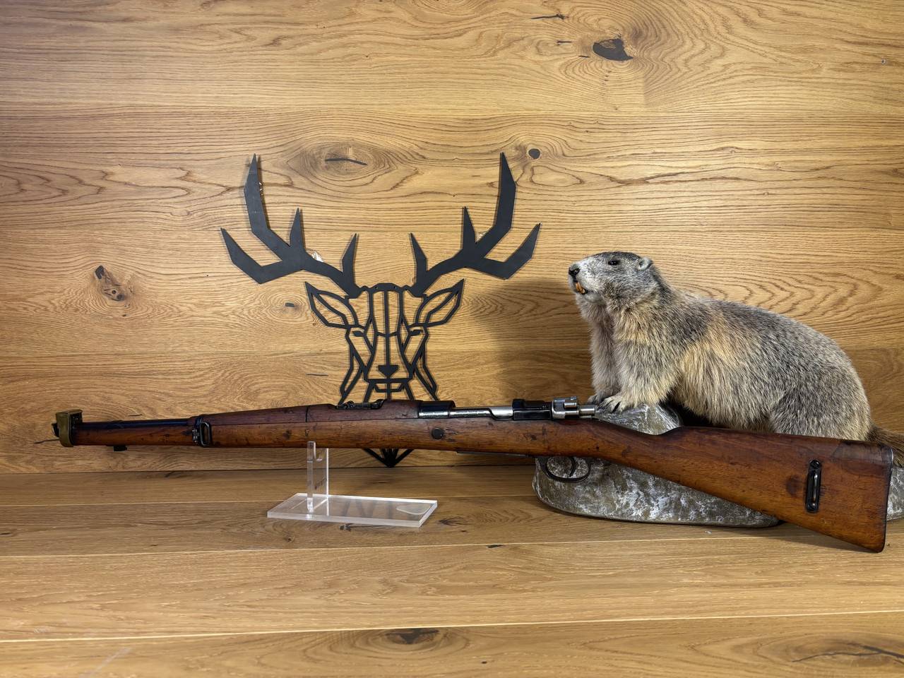 Kaliber: 7,65,53 Arg. Model: DWM Argentino 1909 Lauflänge: ~ 60cm Schaftlänge: 33cm Felder und Züge sind gut sichtbar und ohne Rost. Die Waffe hat starke Gebrauchsspuren, aber wurde nicht überarbeitet. Der Vorderschaft hat hinter der Kimme einen Riss (siehe Bilder)