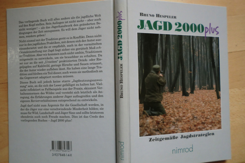 JAGD 2000 plus - Zeitgemäße Jagdstrategien - von Bruno Hespeler, Nimrod-Verlag 2000, 256 Seiten mit 140 Abbildungen, 13 Skizzen, 19 Grafiken, 15 Tabellen und 5 Karten - Inhalt u.a.: Ziele und Merkmale zeitgemäßer Jagd / Gesellschaftsjagden? / Drückjagden aus Prinzip? / Alternative: Ansitzdrückjagd / Ausrüstung / Rehwildbejagung: Drückjagd auf Rehe - Anrührjagden - Fürstenberger Blattjagdtradition / Hochwildjagden: Grundsätzliches zur Rotwildjagd / Damwildjagden / Schwarzwildjagden / Kirrung als Ausweg? / Saufänge / Gamsbejagung / Niederwildjagden: Feldhasen - Fasanen - Tauben - Stockenten / Verhalten vor und nach dem Schuß / und vieles andere mehr -Guter bis sehr guter Zustand