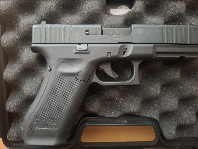 Waffe: Glock 19 Gen5 (PTB-geprüft) im originalen Waffenkoffer.