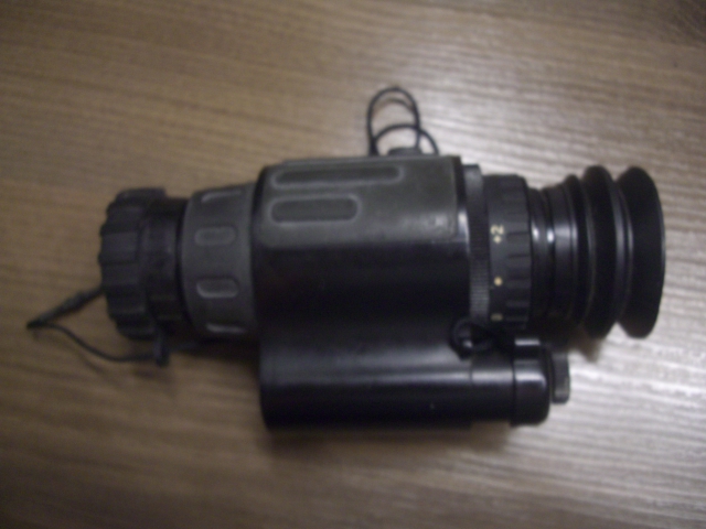 Nachtsichtgerät mit Photonis 2+ Röhre grün, in der Bild Mitte sind einige kleine schwarze Flecken, die auf die Funktion keinen Einfluß haben.