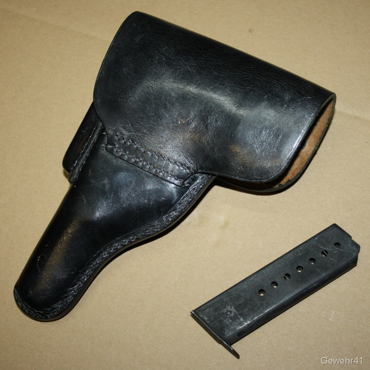 Sie kaufen das abgebildete BW Set bestehend aus Lederholster und Magazin für Walther P38. Beides im schönen Zustand mit nur leichten Gebrauchsspuren. Funktion einwandfrei.