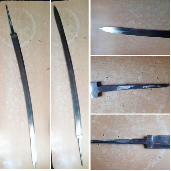 Säbelklinge,guter Zustand ,Stabil, mit Hohlkehle usw.Länge ca.77 cm.Nur Angel ca.13 cm,Breite ca. 3,1 cm.