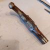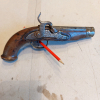 Vorderlader-Pistole antik im Fundzustand, nur gereinigt, Zustand siehe Fotos, große Schlossfeder vorhanden aber gebrochen, Länge 28 cm