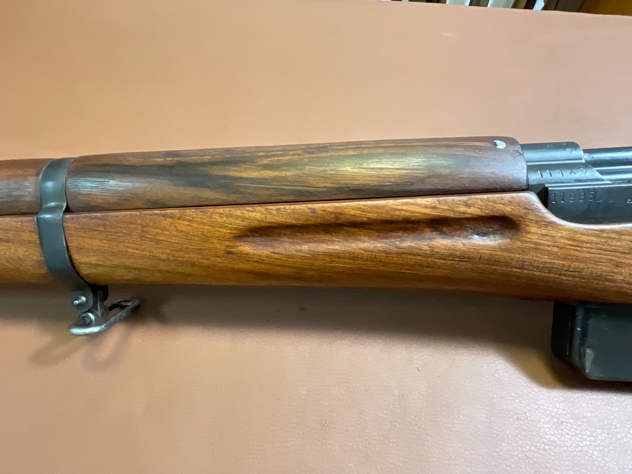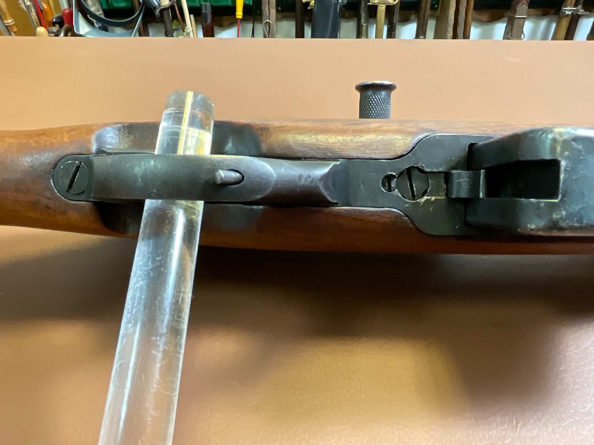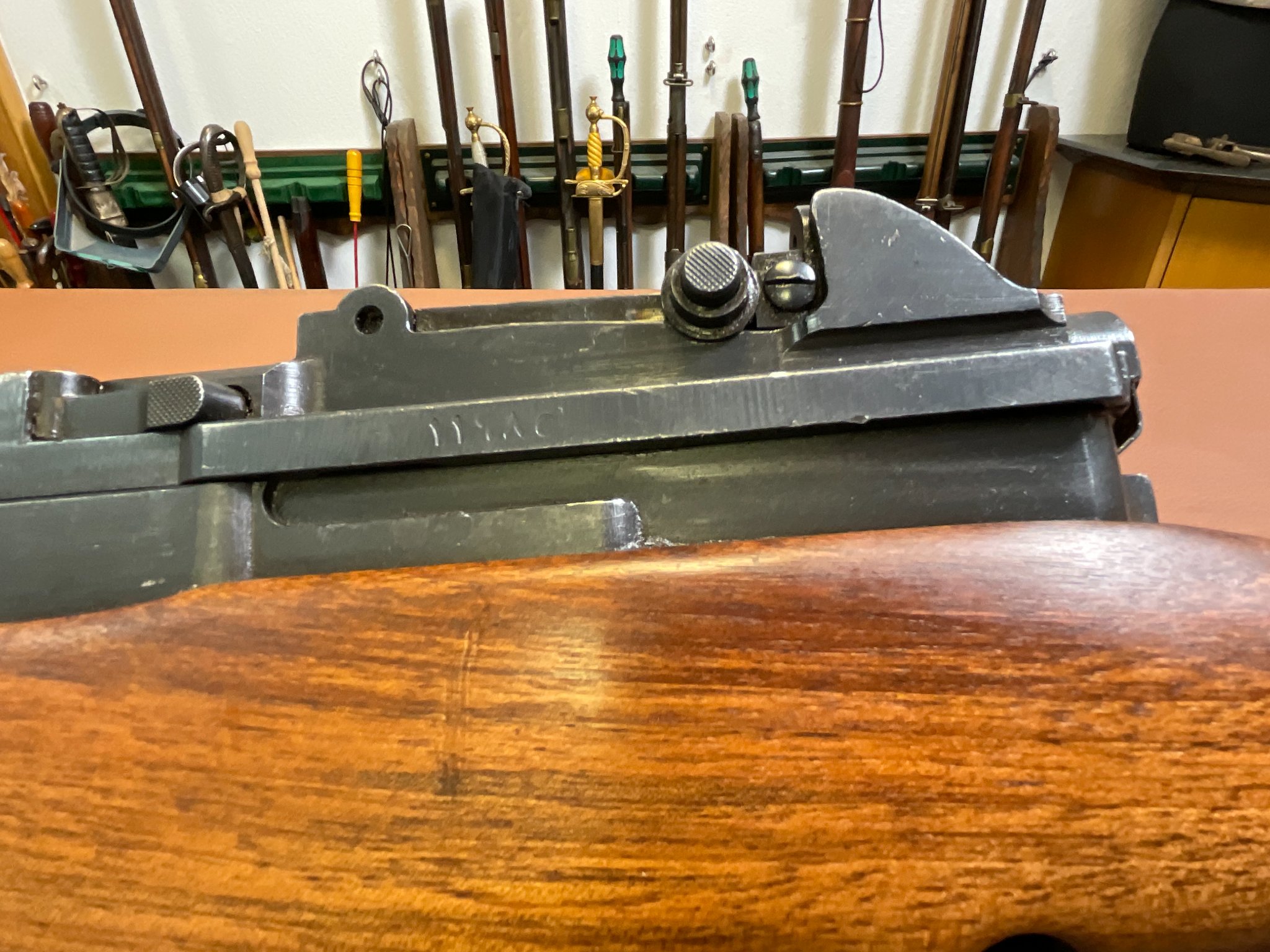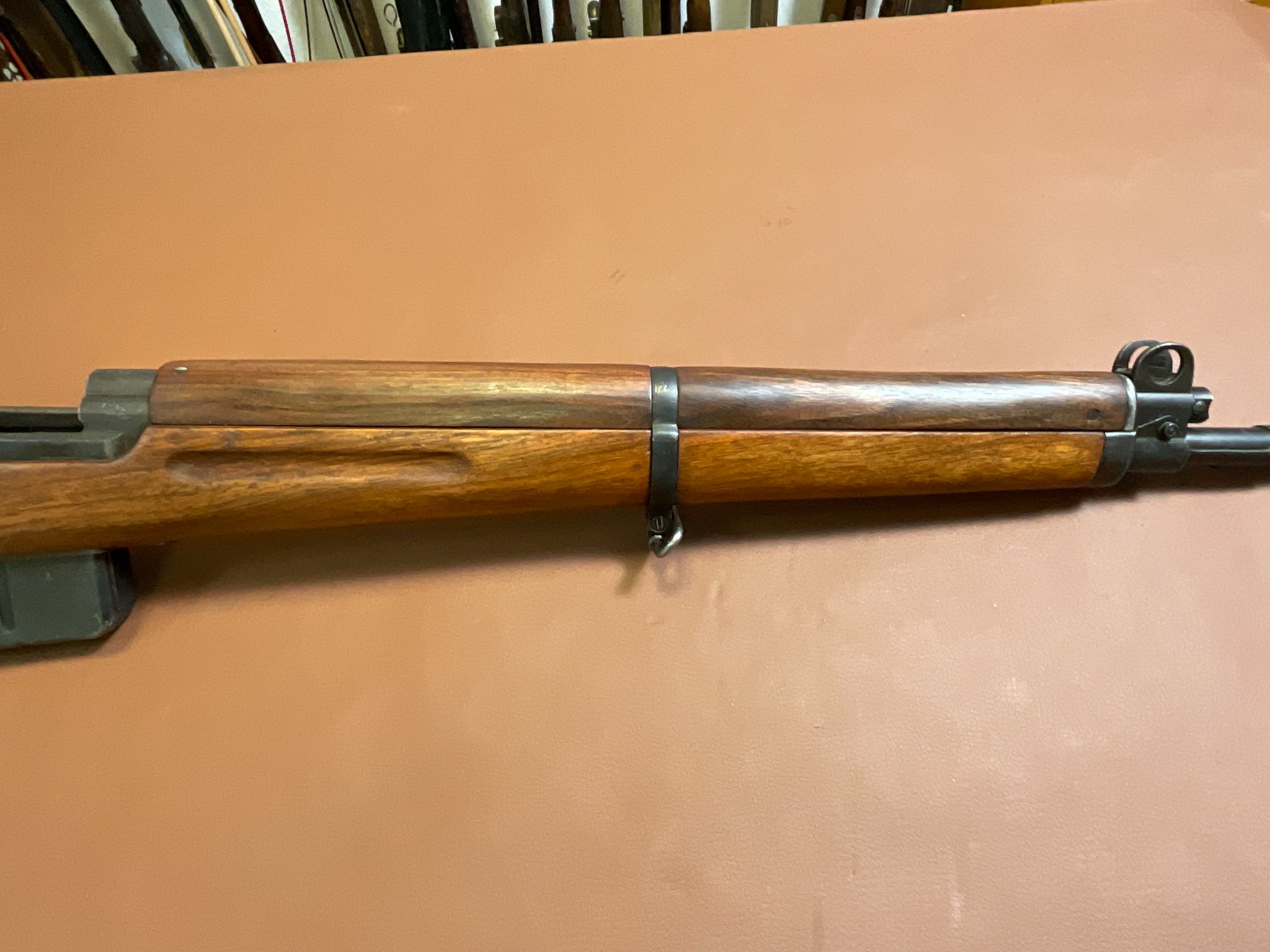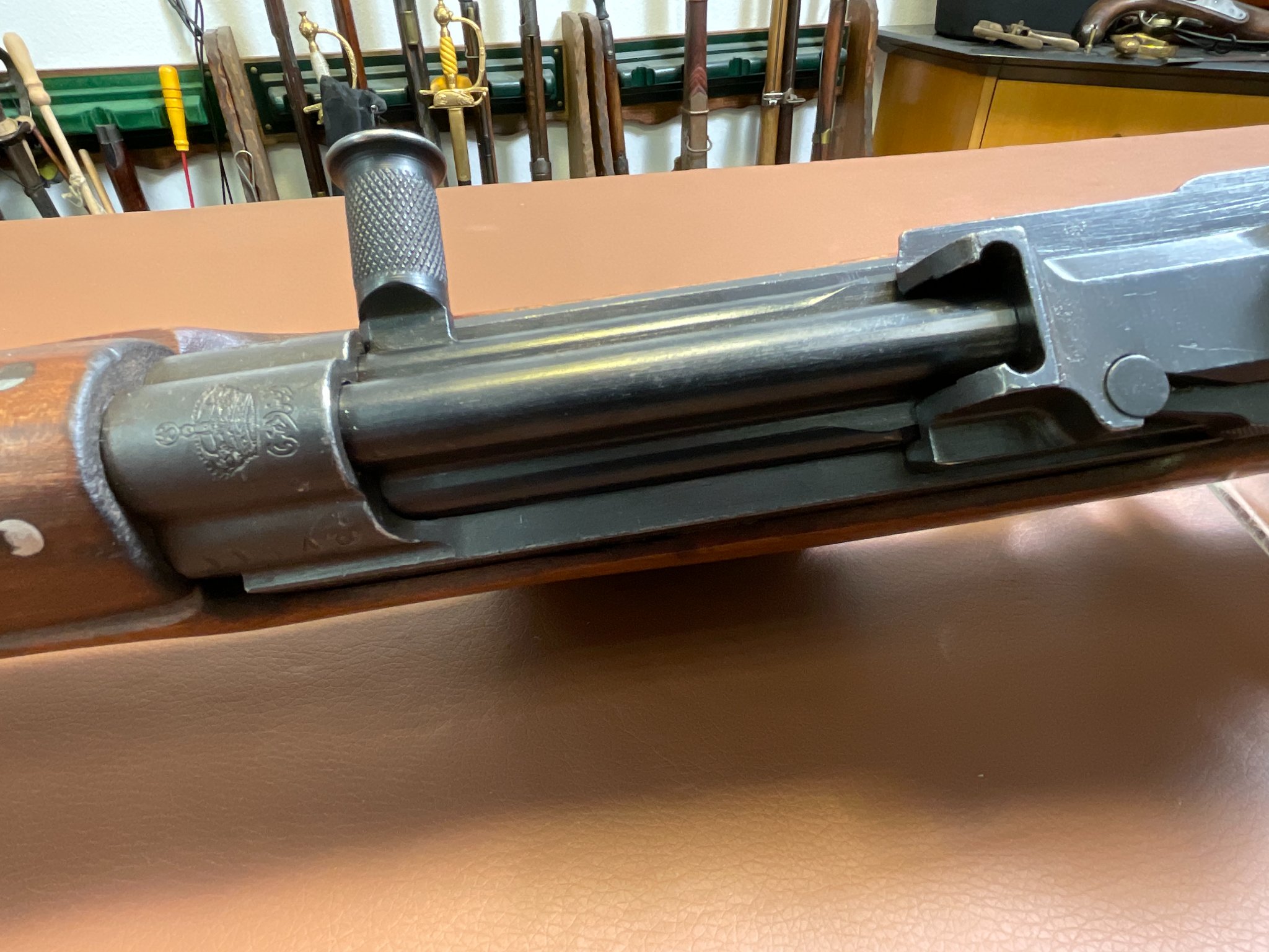 Zum Verkauf steht eine Selbstladebüchse SAFN 49 im Kaliber 8x57 IS. Es handelt sich um eine ehemalige Militärwaffe gefertigt von Fabrique Nationale für das ägyptische Militär.