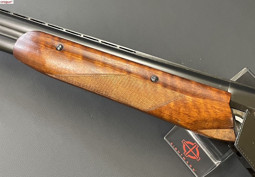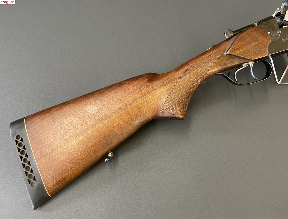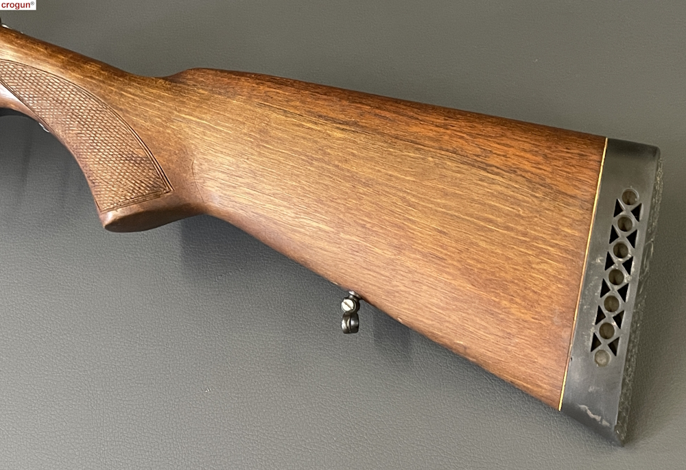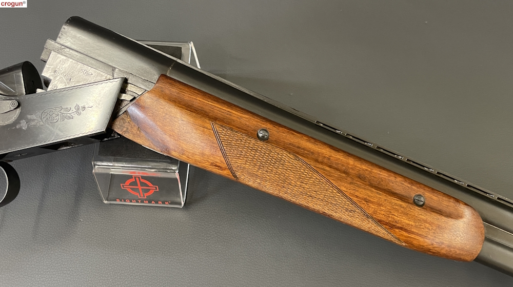 Schaft: Nussbaum mit Pistolengriff, partielle Fischhaut, ventilierte Gummischaftkappe