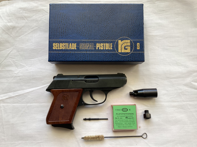 Moin!! Da ich noch zwei Röhm RG 9 mit der PTB 232 besitze, werde ich eine abgeben. Die ich abgeben werde,ist von mir nicht beschossen worden und hat die PTB 232. Der Staatliche Beschuß ist ID ( 83 ) . Bei dieser PTB ist das Patronenlager noch nicht geschwächt und die Laufsperre ist noch recht dezent gehalten und schön zurückgesetzt!!Für mich ist die Röhm in einem guten Zustand und die Brünierung ist auch gut Erhalten. Es funktioniert alles wie es soll . Durch das gute Ölen sind einige Schattierungen auf den Bildern. Der Karton ist auch super erhalten und die Beschreibung auch. Dann gebe ich noch 10 Platzpatronen dazu 600 bar ( ungeöffnet) ,ein Schlagbolzen aus der alten Produktion und von mir selbst angefertigte und Brünierte Staudruckschraube, damit die Röhm auch mit 450 bar Patronen repetiert . Es ist nach dem Verkauf ein Altersnachweis vom Käufer erforderlich und es gibt von meiner Seite aus , keine Garantie oder Gewährleistung und auch keine Rücknahme !!