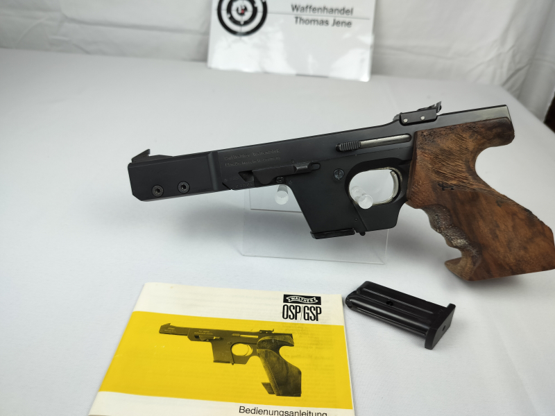 Pistole Walther GSP im Kaliber ,22 lr, mit Bedienungsanleitung und zweitem Magazin