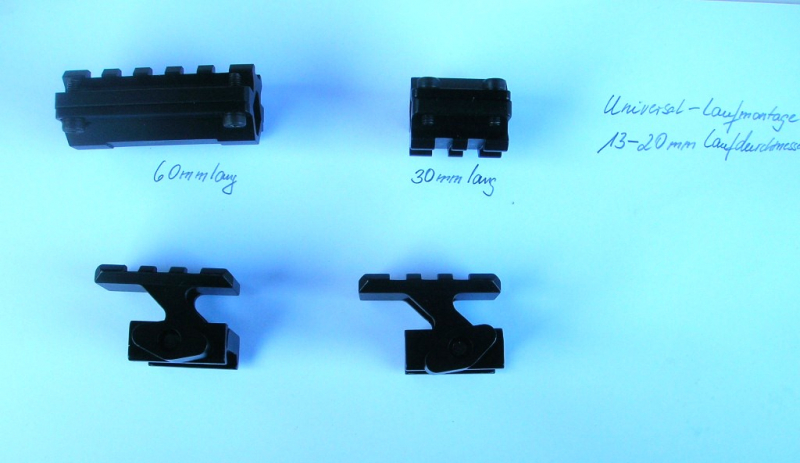 Biete die abgebildeten neuwertigen Lauf- Zielfernrohr – Montagen aus Aluminium für Weaver-/ Picainny Schienen an. Die Maße entnehmen Sie bitte den Skizzen neben den jeweiligen Montagen.