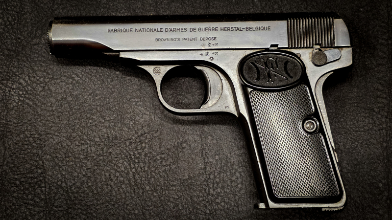 Diese klassische Selbstladepistole wurde von der Fabrique Nationale d’Armes de Guerre (FN), Herstal, Belgien gefertigt und basiert auf einem Entwurf von John Moses Browning. Das Modell zählt zu den bekanntesten europäischen Taschenpistolen des frühen 20. Jahrhunderts und wurde sowohl zivil als auch behördlich genutzt.