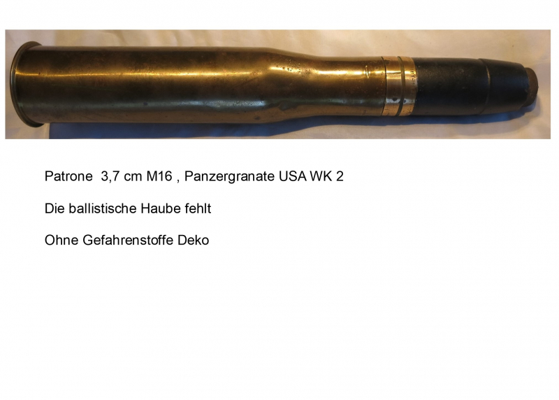 abzugeben. Patrone 3,7 cm M16 US mit Panzergranate,,,, Privater Verkauf kein Umtausch oder Zurücknahme. Versicherter Versand. Keine Garantie oder Gewährleistung. Ohne Gefahrenstoffe !!Deko!!! Beschreibung siehe Bild,, No Paypal