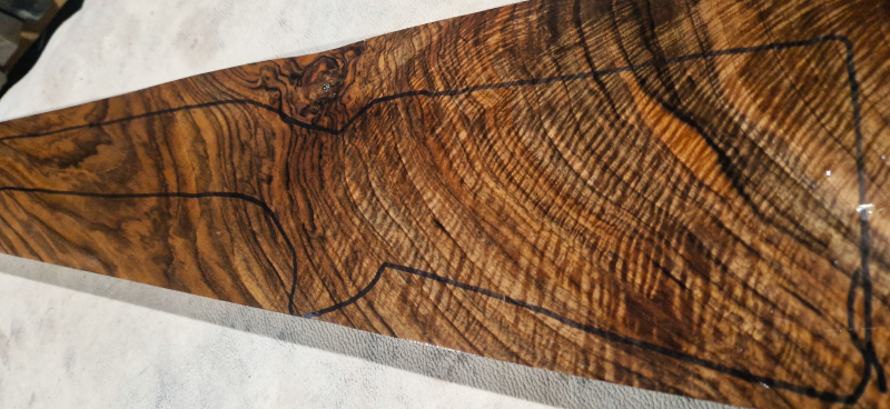Die ersten Aufnahmen entstanden auf einem leicht angefeuchteten Holzbrett, um die Farben und die Schönheit des fertigen Produkts realistischer darzustellen. Das letzte Bild zeigt die Maße in Zentimetern. Die Stücke wurden fünf Jahre lang luftgetrocknet. Auf Dampftrocknung wurde verzichtet, um die Farben und die natürlichen Harze des Holzes zu erhalten. Das Ergebnis ist ein elastischeres, festeres und schöneres Holz.