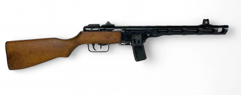 Die Originalwaffe wurde 1943 bei der Instrumental factory NKMP (Tbilisi) hergestellt; hier wurden nur sehr wenige PPSH gefertigt, was sie zu einem wirklich interessanten Stück macht! Der rechtskonforme Umbau geschah bei der bekannten Firma Niedermeier in München.