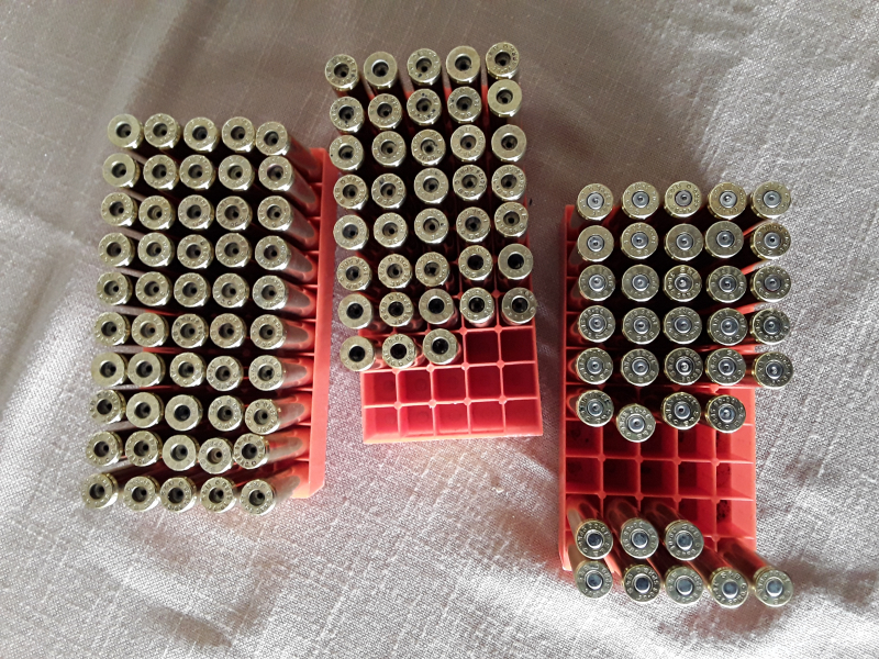 Es geht um 125 Stück Hülsen der Firma S&B. Wie auf dem Bild zu sehen, sind 88 Stück entzündert und kalibriert, 29 Stück unkalibriert und 8 Stück kalibriert und gezündert. Da Privatauktion erfolgt der Verkauf unter Ausschluss jeglicher Sachmangelhaftung.