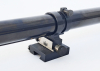 Montagefüße mit zwei seitlichen Klemmschrauben und Prisma (Maße: Breite oben 11,8 mm, Breite unten 8,1 mm, 4,4 mm hoch, beide Montagefüße sind seitlich verstellbar.