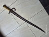 Bajonett mit Alters- und Tragespuren. Klinge und Parier mit konservierender Patina über partiellen Korrosionsansätzen.
