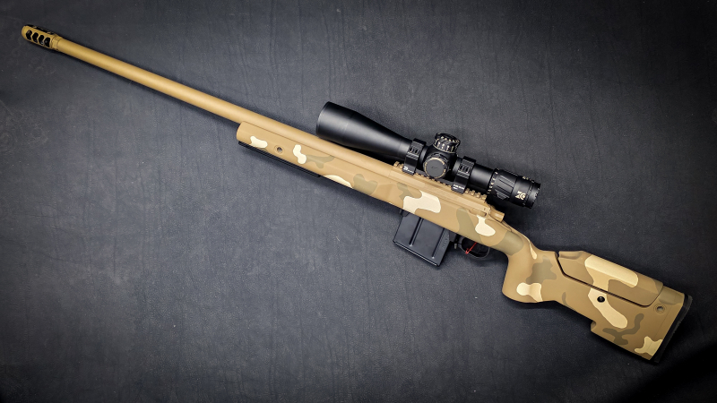 Ausgestattet ist die Büchse mit einem Zero Compromise Optic ZC527 5-27x56 Zielfernrohr mit MPCT1X Absehen – eine absolute Referenz im Long-Range-Bereich.