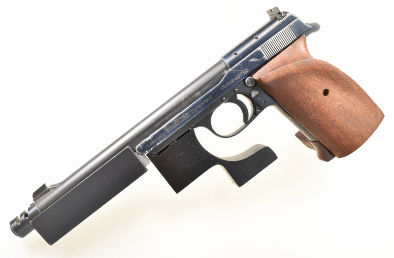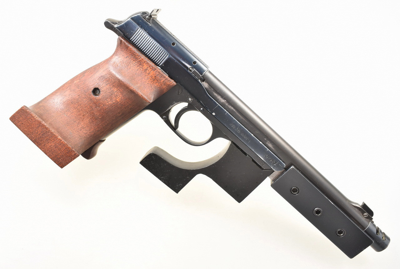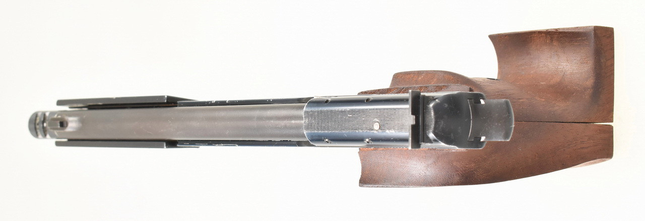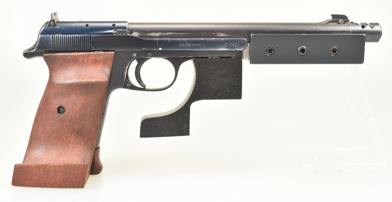 Gebrauchte Scheibenpistole für die Disziplin " Olympische Schnellfeuer Pistole ". Die Hämmerli - Olympia Pistole. Spiegelblanker Lauf mit Kompensator. Rechtsschützen Formgriff in Größe S mit Daumen- und Handkantenauflage. Details siehe Bilder.