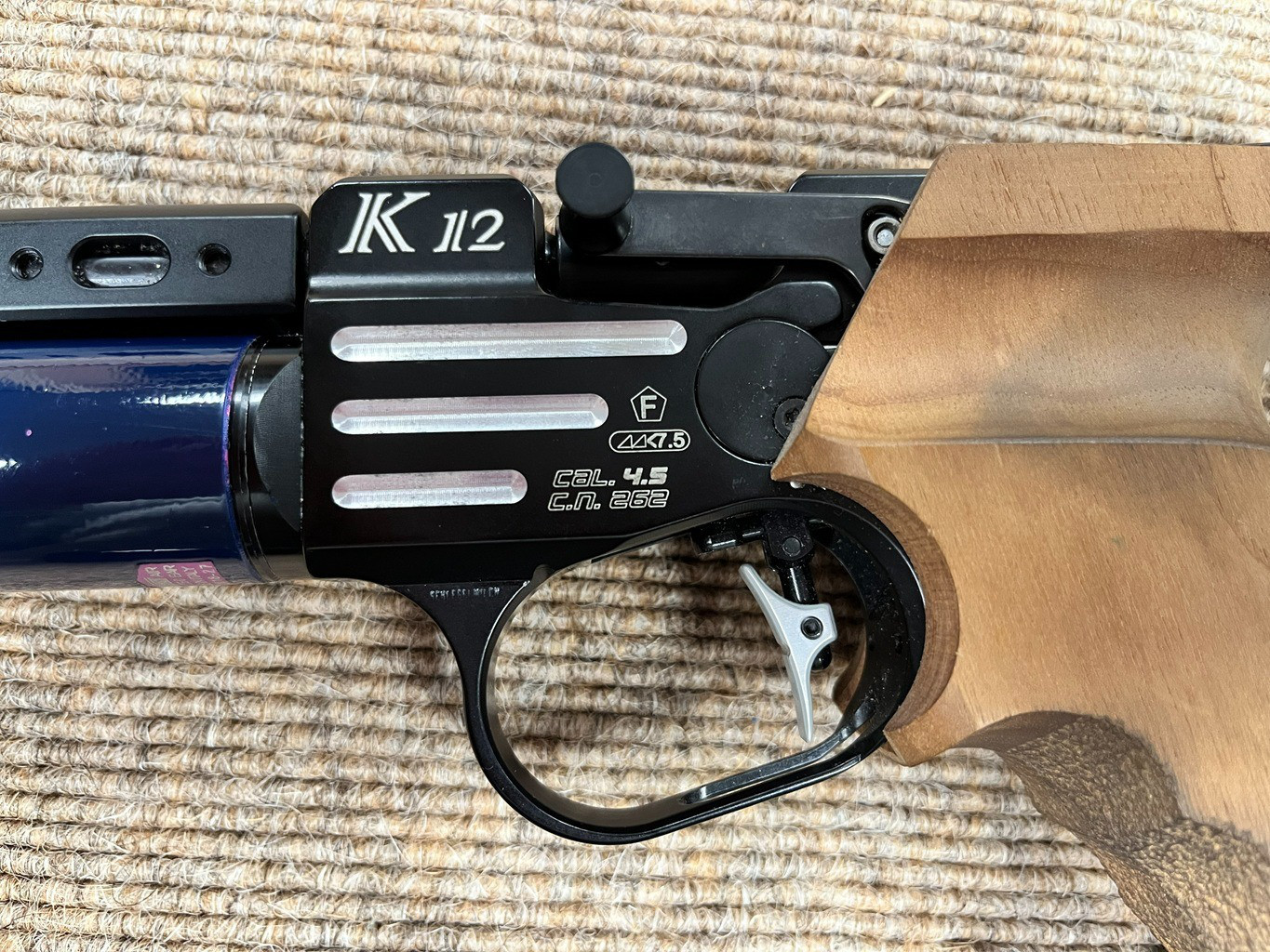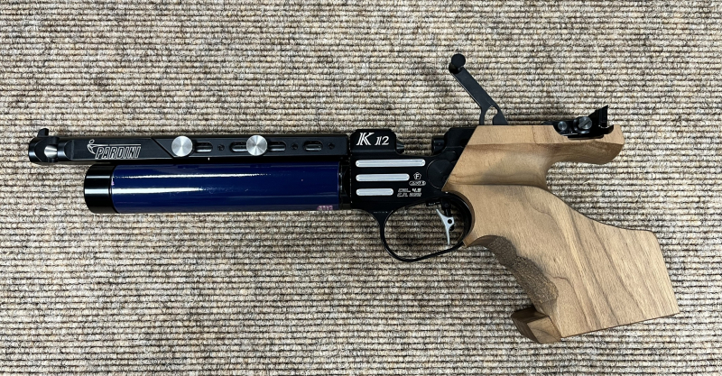 Zum Verkauf steht eine hochwertige Pardini K12 Luftpistole im Kaliber 4,5 mm (.177) – eine der führenden Wettkampfpistolen im Schießsport.