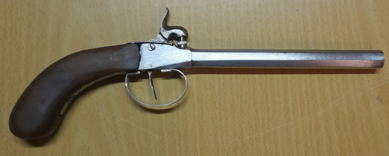 ich verkaufe hier ein Perkussion Terzerol in einem relativ – für sein Alter – gutem Zustand, der dürfte so zwischen 1850 -1860 liegen. Stempel oder Punzen sind nicht vorhanden. Der Lauf hat mit dem Messschieber gemessen innen einen Durchmesser von 10,3mm und ist Glatt. Der Lauf ist durchgehend frei – ist nicht wie sonst üblich bei sehr alten Waffen innen restlos Verkrustet oder Verrostet, sondern erstaunlich sauber. Der Lauf hat eine Länge von 155mm. Das Piston ist nicht zerschlagen und lässt sich gut ein und ausschrauben. Der Abzugsbügel wurde wohl ersetzt oder erneuert. Lediglich die Schlagfeder ist etwas zu schwach – was zur Folge hat das der Hahn nicht immer einrastet – es hilft, wenn man den Abzug hierbei leicht unterstützt und gering vorne drückt - hier müsste sie entweder aufgearbeitet oder erneuert werden. Meiner Meinung nach ein durchaus Sammler würdiges Belegstück. Bitte sich die Bilder ansehen sie sind Teil der Beschreibung, sie kaufen das was sie sehen, auf Wunsch kann ich aber noch welche zusenden. Hier noch ein Hinweis aus gegebenem Anlass da es Mode geworden ist nach dem Erwerb sich zu Beschweren – Sie ist Alt – ist nicht Makellos – hat sicherlich den einen und anderen Fehler – ich beschreibe hier nicht jede Kleinigkeit, Fehler, jeden Markel. Fragen stellt bitte vorher wer damit nicht einverstanden ist bitte nicht bieten. Und zum Schluss noch das Übliche das schreibt das neue EU-Gesetz vor, nachfolgenden Vermerk aufzuführen: "Ich verkaufe bei meinen Auktionen ausschließlich Gebrauchtware, sofern nicht anders beschrieben. Diese Waren sind aus meinem Privatbesitz und ich verfolge mit meinen Auktionen keinerlei gewerbliche Zwecke. Eine Rechnung gibt es hierfür nicht. Da mittlerweile auch Privatverkäufer ein Jahr Gewähr leisten müssen, wenn sie das nicht ausschließen, erkläre ich hiermit ausdrücklich, dass ich für meine privat versteigerten Artikel keine Gewährleistung und keine Rücknahme übernehme. Mit der Abgabe eines Gebotes erklären Sie sich ausdrücklich damit einverstanden, auf die Ihnen nach neuem EU-Recht gesetzlich zustehende Gewährleistung/Garantie bei Gebrauchtwaren völlig zu verzichten. Somit ist eine Sachmängelleistung, Garantie - Rückgabe - Umtausch – Nachverhandlungen und der gleichen ausgeschlossen.
