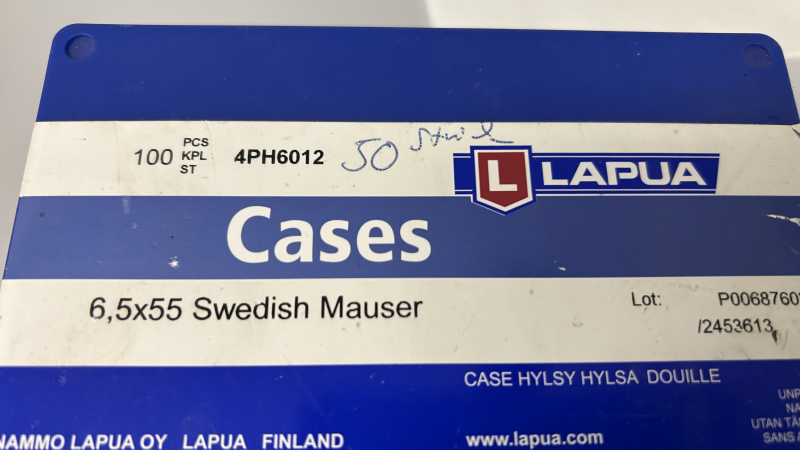 Sie bieten auf 50 Hülsen der Firma Lapua für das cal. 6,5 x 55 Schwedish Mauser