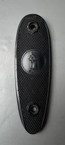 Biete eine alte Haenel Suhl Schaftkappe aus schwarzem Bakelit an. Die Schaftkappe ist gebraucht, war an einem Drilling montiert gewesen und wurde gegen eine Gummi-Schaftkappe ausgetauscht. Vielleicht kann jemand die Schaftkappe als Ersatzteil gebrauchen. Zustand: gebraucht, weist normale, altersbedingte Gebrauchsspuren auf, keine Beschädigungen. Versandkosten trägt der Käufer. Privatverkauf! Keine Garantie! Keine Rücknahme!