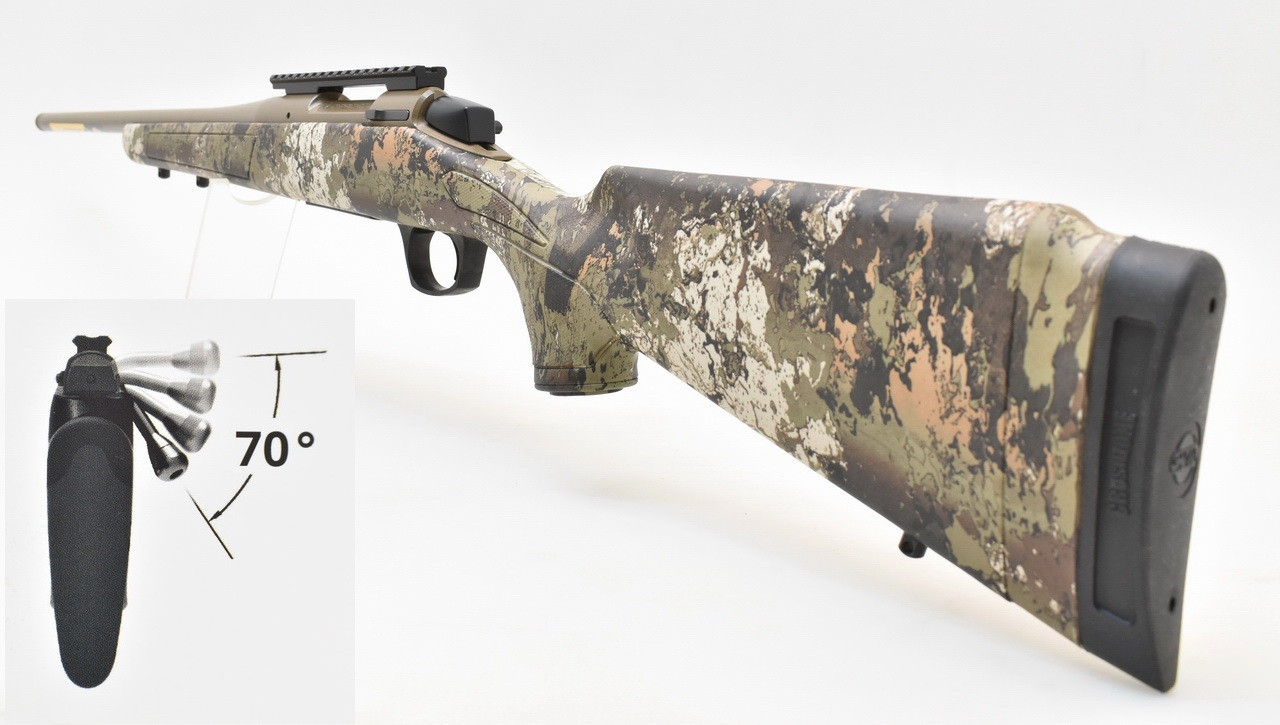 und 5/8-24" UNEF Laufgewinde. 349mm langer Camo Synthetikschaft für Rechts- und Linksschützen