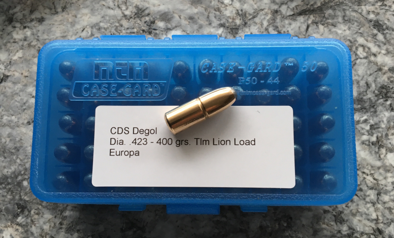 Sie bieten hier auf...50 x CBS Degol Geschosse...Dia. .423 - 400 grs. SPRN (Softpoint Roundnose) Lion Load...kosten bei Johannsen 88€/50 Stück ohne MTM Box (Wert 7€)...gebondetes Geschoss...