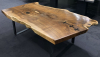 Dort, wo der Schaft aus dem Kern der Tischplatte geschnitten wurde, liegt
