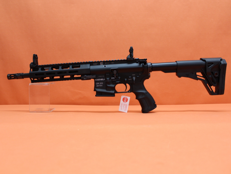 Gas-Piston-System AR-15, 10" Lauf Heavy Barrel (Drall 1-7"), NATO-Mündungsfeuerdämpfer (M15x1), A3 Upper Receiver, Verschluß mit Schlagbolzensicherung, Spannschieber mit vegrößerter Entriegelung (Big Latch), Lower Receiver mit beidseitigen Bedienelementen: Sicherungs-(auch entspannt sicherbar)/ Magazinlösehebel, Direktabzug (ca. 32N), beidseitiger Karabineröse (Receiver End Plate Loop), 215mm QD Alu M-LOK 2-Rail-System/ -Handschutz, ergonomischer Pistolengriff, 6-Pos. Schubschaft mit einstellbarer Wangenauflage, 10-Schuss Magazin. Incl. Flip-Up-Visierung. Karton als Transportverpackung.