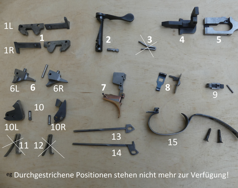Verschiedene erwerbsfreie Ersatzteile für orig. Miroku Anschütz Bockflinte im Kal. 12/70