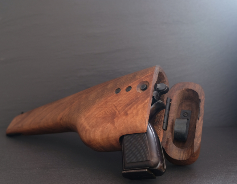 Dieser Holzschaft ist eine Historische Reproduktion in einem funktionalen Best Zustand. Dieser Holzschaft passt an eine für einen Schaft vorgesehene FN HP Pistole. Der Schaft wurde getestet und funktionierte während des Schießens einwandfrei.
