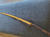 Tolles Katana bzw Shinken zu verkaufen. Die 73 cm lange Klinge (-mit Habaki) aus Kohlenstoffstahl wurde handgefertigt in Kobuse geschmiedet. Die Härtelinie/Hamon wurde traditionell mittels Lehmbestrich gefertigt. Zudem ist die Klinge rasiermesserscharf und auf Hochglanz poliert. Der 27 cm lange Griff ist mit schwarzer Rochenhaut unterlegt. In die lackierte Saya wurde ebenfalls Rochenhaut eingearbeitet. Alle Zierrate des Samuraischwertes zeigen Drachenmotive. Das Katana wurde nie für Tameshigiri oder ähnliches genutzt und befindet sich in einem sehr guten Zustand. Tolle Gelegenheit für Sammler und/oder Budokas!