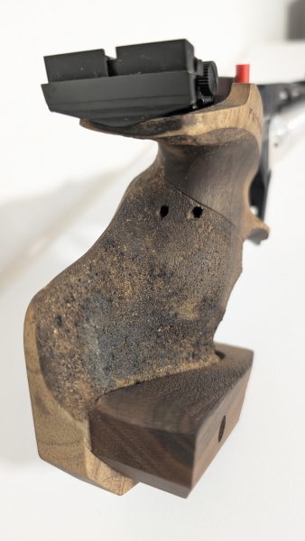 Der S-Griff für Rechtshänder wurde von einem erfahrenen Schützen minimal(!) angepasst, um ihn für mich zu optimieren. Die Änderungen sind kaum zu sehen (siehe Fotos).