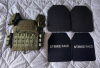 Sie kaufen hier einen kugelsicheren Gefechtshelm mit elektronischen Gehörschutz und einen Plattenträger im Mollesystem + 2x Schutzplatten NIJ Level IIIA + 2x Dämmplatte.