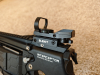 Der Magazineinzug von unten bietet außerdem eine nach oben offene Schiene mit Platz für Anbauteile und Zubehör zur Aufwertung der Waffe z.B. Zielfernrohre, Red Dots. Eine Red Dot Zieleinrichtung ist ebenfalls montiert.