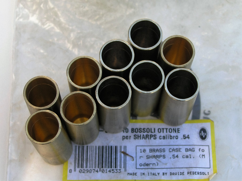 Aus Nachlass: Pedersoli Ladehülsen für Sharps .54, 10 Stk, 5 neu, 5 wohl geschossen aber Top-gereinigt, noch in OVP