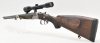 Stahlsystemkasten mit kleiner Arabeskengravur. Französischer Rückstecher im vorderen Abzug. Läufe aus Special Gewehrlaufstahl. Die Waffe ist auf einer SEM mit einem Frankonia ZF 6x42 Abs. 1 montiert. Dichter Verschluss, rechter Schrotlauf stellenweise rau. Die anderen Läufe sind blank. Beschuss von 03/71. Schaftlänge 36,5cm gemessen vom vorderen Abzug bis Mitte Schaftkappe.