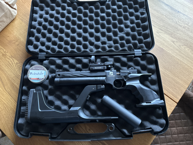 Auch diese, sehr präzise Druckluft-Waffe ist wegen Hobbyaufgabe in gute Hände abzugeben. Alles komplett und praktisch neu und das ganze sicher im stabilem neuem Koffer. Der Schalli ist ein K3 Neo, das RedDot ist von 4komma5. Neupreis gesamt über 500€.