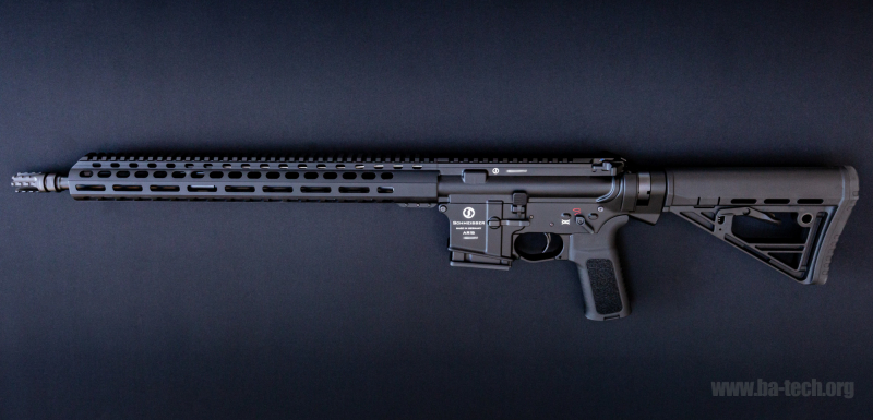 Die Schmeisser AR15 M5FL ist eine besonders führige SL-Büchse für die Anwendungsbereiche Jagd und Sport mit freischwingendem Lauf. Diese Waffe hat einen No Flash Mündungsfeuerdämpfer, einen schlanken M-Lok Vorderschaft und einen verstellbaren Stahlgasblock. Der Two-Stage Trigger garantiert eine klar definierte trockene Schußauslösung. Sowohl Sicherung, Magazinauslöser, Durchladehebel als auch Verschlussfang sind beidseitig ausgelegt. Die Solid-Verstärkung am Lower erhöht die Stabilitität um ein Vielfaches gegenüber herkömmlichen AR15. Auslieferung erfolgt serienmäßig mit 10 Schuss Magazin und Flip-up Visierung.